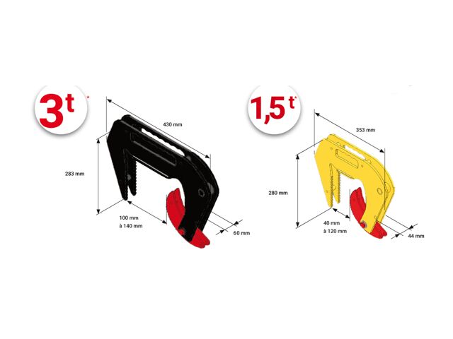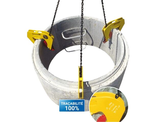 “ - Pour soulever et déplacer des buses et des regards en béton - Trois pinces à fermeture automatique - Grande résistance et durabilité ”