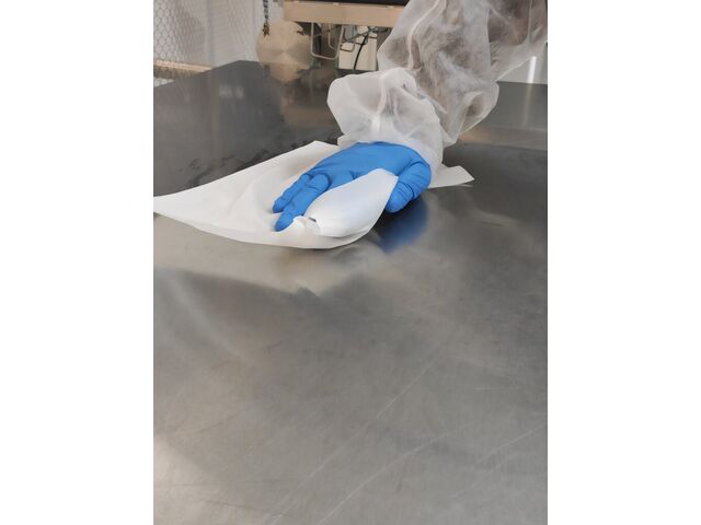 3. Solution de nettoyage maîtrisée : Lingettes saturées avec un mélange de solvants filtrés à 0,2 µm (alcool isopropylique ou éthanol pharmaceutique/eau déionisée), offrant un très faible niveau d’ions et d’extractibles.