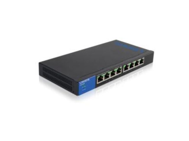 Linksys Unmanaged Switches 8 ports LGS108P PoESwitch non manageableLe switch LGS108P de Linksys dispose de port Gigabit pour réduire les temps de transfert et améliorer la capacité de diffuser des fichiers à haut débit pour les périphériques connectés, sans interférence. Sa fonction plug-and-play permet au Linksys d'être une solution simple et rapide à installer pour les professionnels recherchant à étendre le réseau de leur entreprise.Dans un soucis d'économie d'énergie, le Linksys LGS108P dispose de plusieurs technologies comme la désactivation des ports inutilisés afin de réduire la consommation.Caractéristiques du Linksys LGS108PNombre de ports Ethernet : 84 ports PoENorme réseau : 10/100/1000Manageable : NonPlug-and-playConsommation (Idle/Use) : 1.07W / 3.53 W Dimensions : 154 x 85 x 26 mm