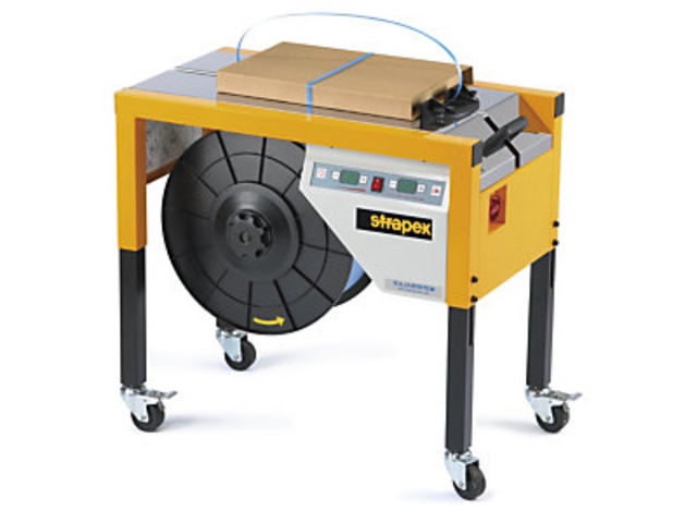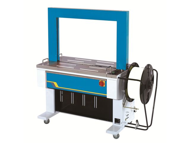 Grande productivité : parfaitement adaptée au cerclage grandes cadences de caisses de taille homogène.Simple d'utilisation : cerclage automatique par contacteur mécanique ou manuel par bouton ou pédale.Grande mobilité : 4 roulettes qui facilitent son déplacement. Livrée avec une bobine de feuillard polypropylène 12 mm. Pour feuillard PP larg. 12 mm. Ø intérieur des bobines 200 ou 280 mm. Force de tension : 98 à 686 N. Dimensions arche : l 850 h 600 mm. Alimentation : 220 V mono. Dimensions de la machine : L 1417 x l 630 x h 1530 mm. Poids : 228 kg.