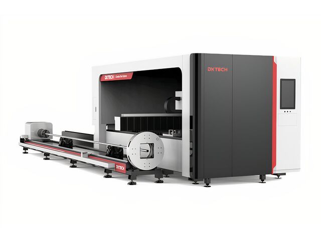 La machine de découpe laser à fibre pour tubes et tuyaux avec système de chargement automatique proposée par DXTECH offre une capacité de coupe rapide et précise pour une vaste gamme de tubes métalliques. Dotée d’un design à double mandrin novateur, elle permet notamment la coupe de queues extrêmement courtes sur des tubes de différents diamètres. Cette solution optimise la productivité grâce à son chargement semi-automatisé, adaptée aux besoins industriels exigeant polyvalence et efficacité.