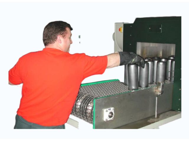 Convoyeur à rouleaux intégré : Système de transport automatique permettant l'acheminement fluide des bouteilles vers l'unité de lavage.