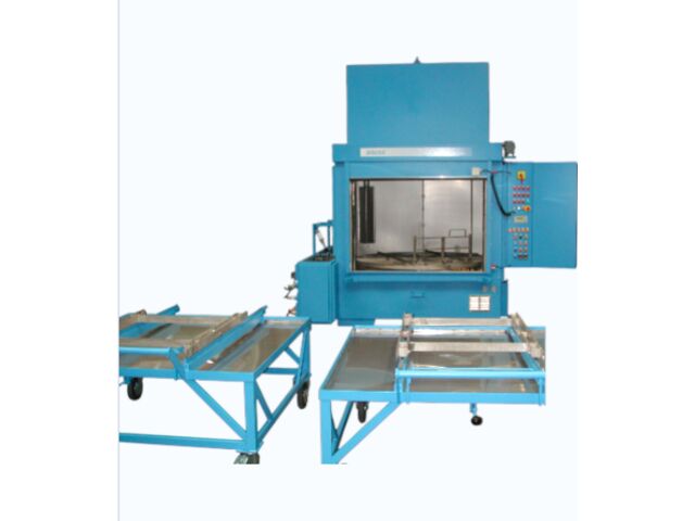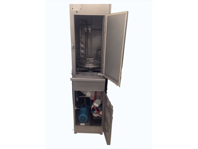 Cabine de lavage fermée : Compartiment de nettoyage sécurisé évitant la dispersion des poussières et résidus d'agents chimiques dans l'atelier.