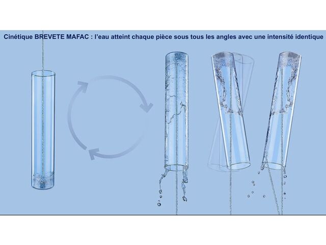 Procédé de lavage par la cinématique breveté MAFAC : rotation synchronisée des paniers et des paniers porte pièces.
