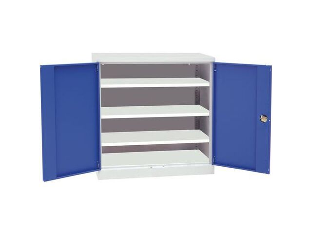 Avec une hauteur hors tout de 100 cm, une largeur de 91,6 cm et une profondeur de 42,2 cm, cette armoire offre un volume de rangement généreux. La structure, d'un gris discret et professionnel, s'harmonise facilement avec tous types de décorations de bureau. Les deux portes battantes de couleur bleu vif ajoutent une touche de couleur tout en assurant une fermeture sécurisée grâce à un système de fermeture à clé intégré, garantissant la confidentialité de vos documents et matériels.
