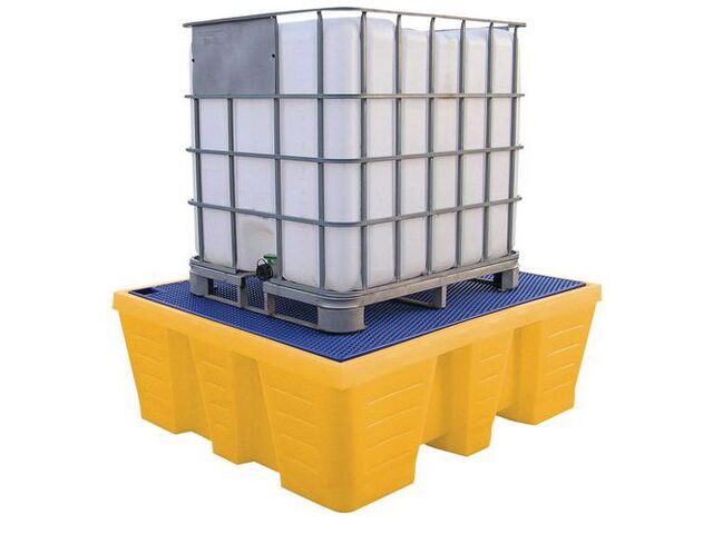 Placez le bac de rétention sur une surface plane et stable. Positionnez ensuite le GRV ou les fûts à stocker à l'intérieur du bac, en vous assurant qu'ils soient correctement calés si nécessaire. En cas de déversement, le liquide sera contenu dans le bac. Procédez à un nettoyage régulier du bac et du caillebotis pour maintenir un environnement de travail sûr et propre. Vérifiez périodiquement l'intégrité du bac pour vous assurer qu'il n'y a pas de dommages ou de fuites.