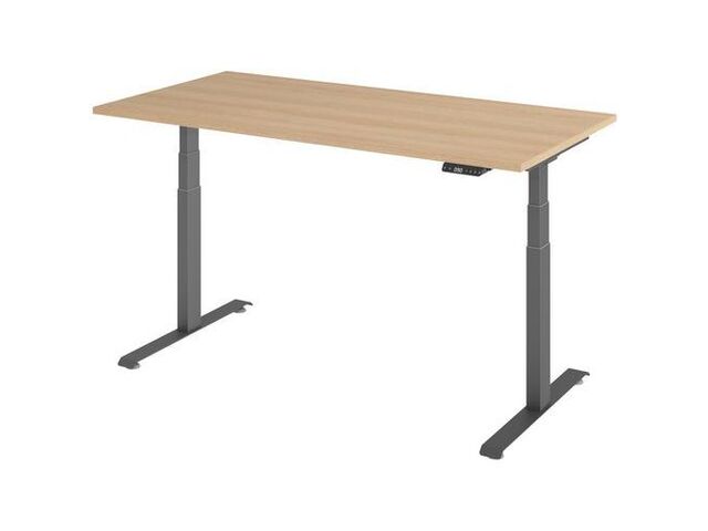 Profitez de l'ergonomie avancée et du design élégant du Bureau Électrique 160 x 80cm Chêne/Graphite de Manutan Expert et transformez votre façon de travailler.
