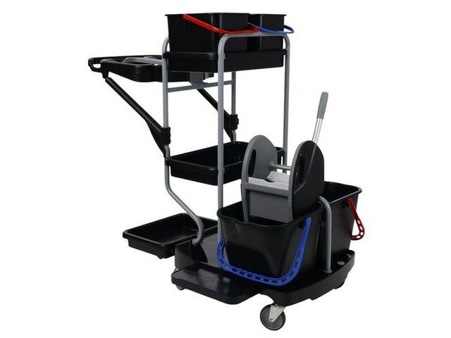 Ce chariot Manutan Expert se distingue par sa conception ergonomique, facilitant la manipulation et réduisant la fatigue de l'utilisateur. Il est également conçu dans une optique Lean Management, favorisant l'optimisation des flux de travail et une organisation plus efficace des opérations de nettoyage. La couleur sobre noir/gris s'intègre discrètement dans tous les environnements professionnels.