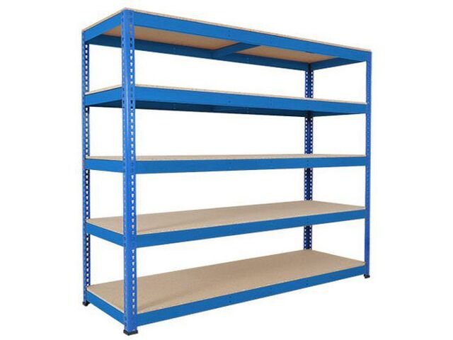Ce rayonnage se distingue par sa capacité de charge impressionnante : jusqu'à 545 kg par niveau, pour une charge totale de 2725 kg. Il est équipé de 5 niveaux de tablettes pleines en aggloméré de 16 mm d'épaisseur, offrant une surface de stockage généreuse de 2440 mm de largeur sur 610 mm de profondeur. Les lisses en acier de 2440 mm, également de couleur bleue (RAL 5019), complètent la structure pour une stabilité accrue.