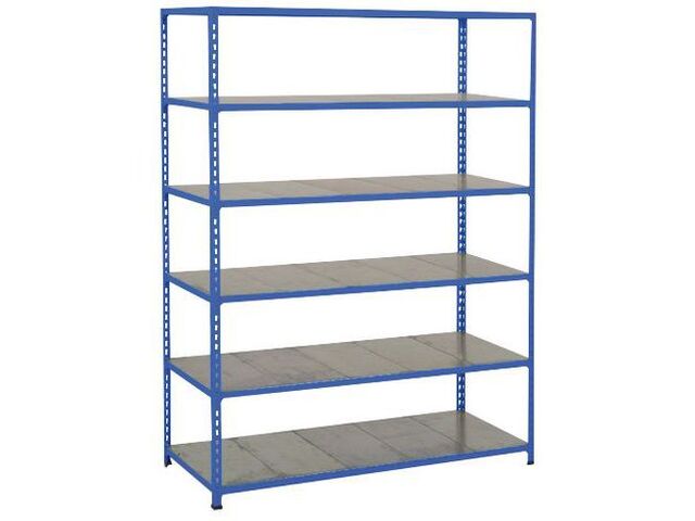Sa structure principale en acier, d'une hauteur de 1830 mm, d'une largeur de 1220 mm et d'une profondeur de 455 mm, est habillée d'une finition époxy durable, garantissant une résistance accrue à la corrosion et à l'usure. Le coloris bleu des montants et des lisses (RAL 5019) confère une esthétique professionnelle et une identification facile au sein de votre espace de travail.