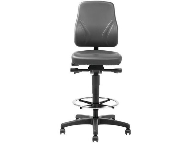 Ce siège est équipé d'un repose-pieds intégré, essentiel pour les postes de travail en hauteur, offrant une stabilité et un confort supplémentaires. Les roulettes robustes assurent une mobilité aisée dans votre atelier ou votre espace de production.