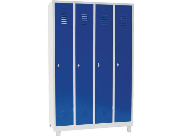 La finition époxy des éléments structurels, d'un élégant coloris gris clair (RAL 7035), assure une excellente résistance à la corrosion et aux chocs, tout en offrant un aspect professionnel et discret. Les portes, d'un bleu vif (RAL 5005), apportent une touche de dynamisme et facilitent l'identification des différentes zones si nécessaire. Chaque porte est équipée d'une fermeture sécurisée à clé, garantissant la confidentialité des biens entreposés, et d'un porte-étiquette pour une identification claire et rapide du contenu ou de l'utilisateur.