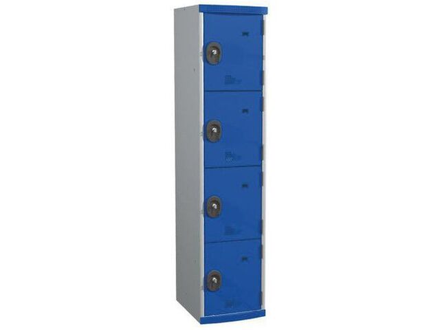Armoire de vestiaire à portes en L Manutan Expert 4 portes - 1800x800x500 mm, gris et bleu. Offrez une solution de rangement sécurisée et fonctionnelle pour vos locaux collectifs avec ce vestiaire métallique de haute qualité. Conçu pour une utilisation intensive, ce modèle allie robustesse et design pratique.