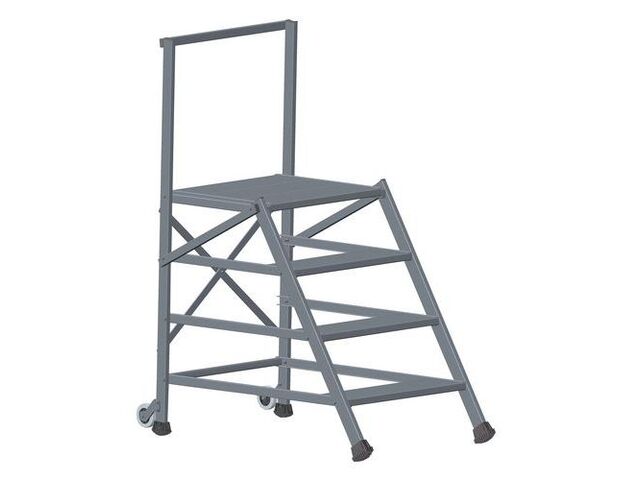 Marchepied fixe et mobile avec garde-corps frontal, charge maxi: 150 kg, plate-forme hauteur: 0.97 m, nb de marches (plate-forme incluse): 4, hauteur d'accès: 2.97 m, plate-forme longueur: 600 mm, plate-forme largeur: 600 mm, matériau: aluminium, coloris: gris, poids du produit: 12.3 kg, marche profondeur: 200 mm, modèle: mobile (2 roues escamotables)