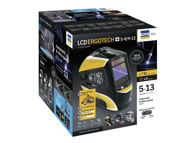 Idéal pour la protection du soudeur lors d’un soudage selon le procédé TIG, le masque LCD ERGOTECH+ 5-9/9-13 BLACK TRUE COLOR est un masque à cristaux liquides qui est doté d’un écran XL et d'un filtre actif de teintes 5-9 / 9-13.