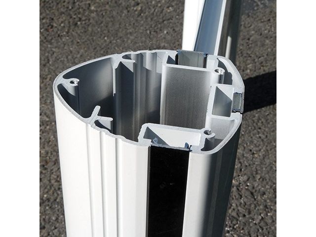Matériau : Aluminium Diamètre : 120 mm Dimensions : de 1,5 à 3,5 mètres Coloris : 18 coloris standard Obturateur : Noir Possibilité de monter des parcloses : Oui (à commander séparément) Esthétique : Design sobre et élégant Sécuritaire : Résistant aux intempéries et aux chocs
