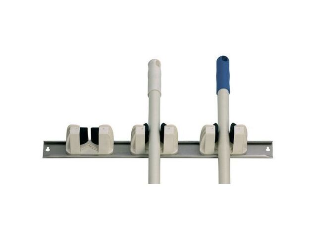 3. Glissez les manches de vos balais, serpillères ou autres outils dans les supports prévus à cet effet.