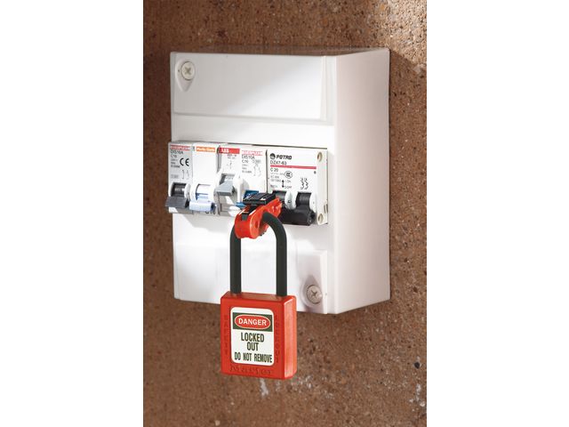 Modèle : S2390Couleur : RougeType : Bloque-disjoncteur miniatureCompatibilité : Disjoncteurs miniatures ISO/DIN et disjoncteurs avec interrupteur à bascule de 11 mm ou moinsFonctionnement : Manuel, sans outilCadenas compatibles : Master Lock et American LockPrésentation : Boîte commercialeFournisseur : Master Lock Europe