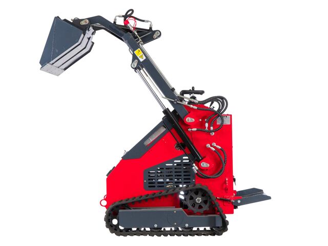 Mini chargeuse - Valet de ferme robuste sur chenilles d'une capacité opérationnelle de 1000 kg, entraînée hydrauliquement par un moteur à essence de 23 ch.