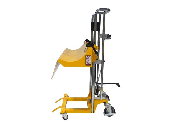 Mini gerbeur lève bobine. Capacité 400 kg. Conçu pour la manutention de bobines, souvent utilisé pour le levage et le déplacement de rouleaux de différents matériaux tels que le papier, le film plastique, et les textiles. Facilite le transport, le levage et la mise en place de rouleaux lourds.Châssis fabriqué en tube d'acier étiré à froid sans soudure de haute qualité, ce qui garantit robustesse et longévité. Léger et maniable, ce mini gerbeur est équipé de 2 roues directrices avec freins pour un contrôle optimal. Caractéristiques techniques : Capacité (kg) : 400 Larg. hors tout (mm) : 1210 Haut. hors tout (mm) : 1410 Haut. levée (mm) : 1200 Dim. roues directrices (mm) : 150 Dim. roues fixes (mm) : 150 Dim. max bobine (mm) : 5000 x 400 Découvrez chez Axess Industries une large gamme d’équipements de manutention adaptés à tous vos besoins : chariots de manutention, gerbeurs manuels ou électriques, gerbeurs élévateurs légers, transpalettes manuels et électriques. Performants, robustes et faciles à utiliser, nos équipements vous accompagnent au quotidien pour optimiser vos opérations de levage et de transport.