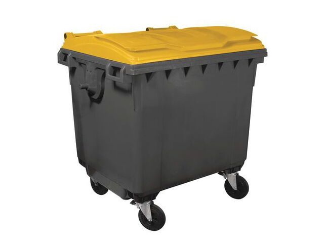Découvrez le conteneur à déchets 4 roues Mobil Plastic, la solution idéale pour une gestion des déchets à grande échelle, conçu pour une utilisation intensive en extérieur et en intérieur. Ce conteneur d'une capacité impressionnante de 1100 litres, alliant fonctionnalité et durabilité, est fabriqué à partir de polyéthylène haute densité 100% recyclable, intégrant 70% de matière recyclée pour une approche éco-responsable affirmée. Son corps gris sobre et son couvercle jaune vif facilitent le tri sélectif et la reconnaissance rapide du contenu, contribuant à un environnement de travail organisé et conforme aux normes environnementales.