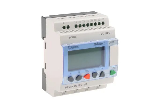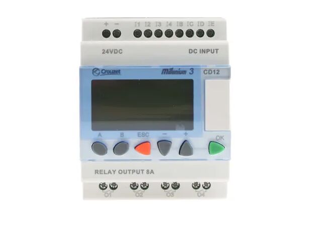 Le module logique Millenium 3 de Crouzet assure le pilotage et l’automatisation d’équipements industriels de petite à moyenne complexité. Il intègre 8 entrées numériques, dont 4 configurables en analogique avec une résolution de 10 bits, ainsi que 4 sorties relais. Conçu pour des environnements industriels exigeants, il fonctionne sous une alimentation 24 V c.c. et délivre un courant de sortie jusqu’à 8 A.