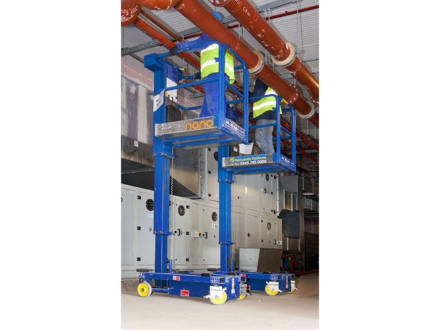 1. Maniabilité exceptionnelle: Grâce à son poids de seulement 285 kg, la nacelle NANO se déplace aisément à la main. Son design compact lui permet de passer à travers toutes les portes standards, y compris dans les couloirs étroits des sites industriels.