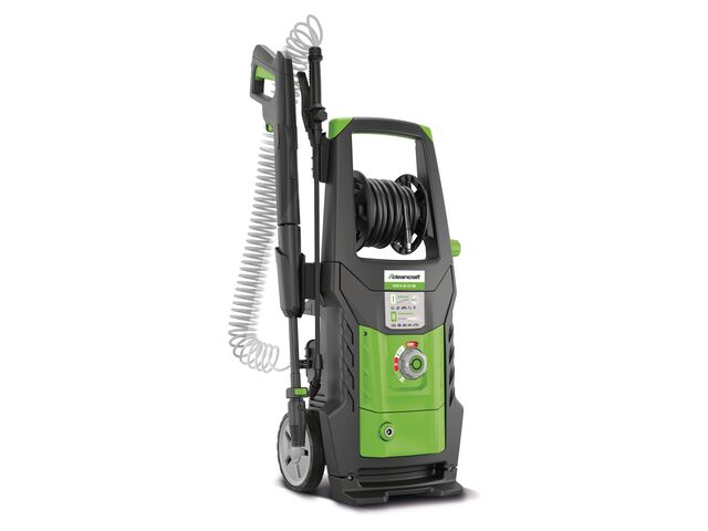 Ce modèle mobile est équipé de deux roues caoutchoutées et d'une poignée ergonomique, ce qui rend le transport particulièrement facile. L'enrouleur de tuyau intégré avec un tuyau haute pression de 8 mètres assure une large zone de travail et un rangement ordonné.