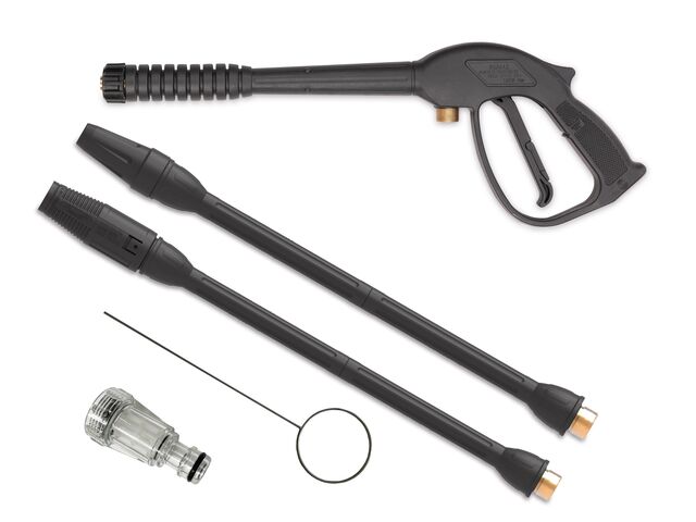 Conception pratique : Des supports pratiques assurent un rangement ordonné du pistolet manuel, de la lance, du tuyau haute pression et du câble d'alimentation. Le tuyau d'eau haute pression résistant à l'abrasion garantit une durabilité accrue