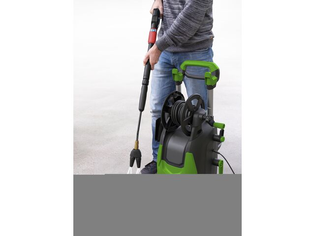 Ce modèle mobile est équipé de deux grandes roues en caoutchouc et d'une poignée télescopique pratique, rendant le transport un jeu d'enfant. L'enrouleur de tuyau intégré avec un tuyau haute pression extra-long de 10 mètres assure une grande portée et un rangement ordonné.