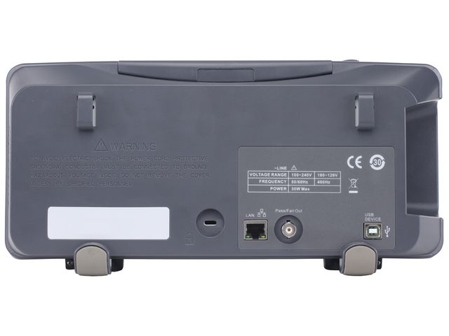Nombre de voies: 2Bande passante: 100 MHzVitesse d'échantillonnage: 1 Géch/s (une voie) et 500 Méch/s (2 voies)Affichage: LCD couleur TFT 480x234, 7 pouces (16:9)Interfaces: USB 2.0 Host, USB 2.0 Device, LAN 100 Base-TDimensions: 323 x 136 x 157 mmMasse: 2,5 kgGarantie: 1 an