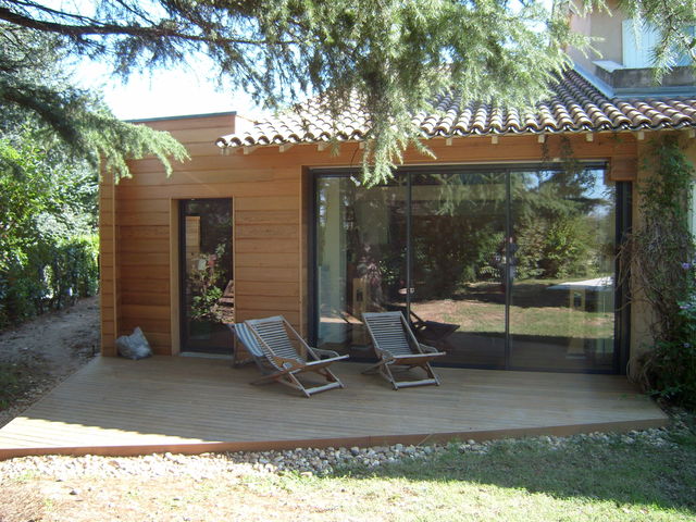 4. Un design modulable : L'ossature bois offre une grande modularité. Selon vos besoins, vous pouvez facilement la modifier et personnaliser votre extension. De plus, le bardage bois en Red Cedar ajoute une touche naturelle et chaleureuse à votre habitat. Une solution idéale pour concrétiser vos envies d'espace, sans compromis entre esthétisme et fonctionnalité.