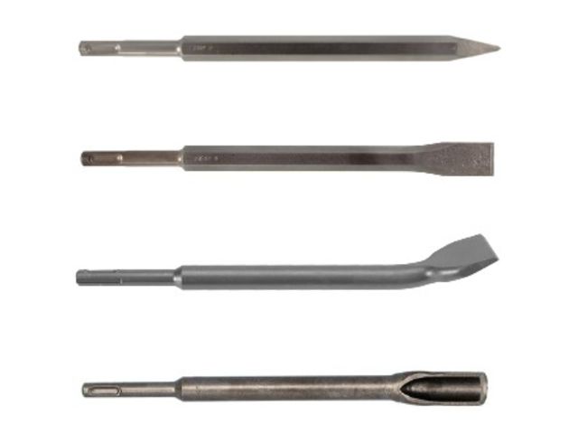 Emmanchement : SDS +Pic diamètre : 14 mmPic longueur totale : 250 mmBurin largeur de taillant : 20 mm, 40 mm, 75 mmBurin diamètre : 14 mmBurin longueur totale : 250 mmBurin coudé taillant : 40 mmGouge largeur de taillant : 22 mm