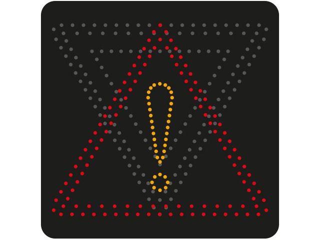 Symbole 1 : Panneau AB3a (cédez le passage) Symbole 2 : Panneau A14 (danger) Dimensions : 700 x 700 mm Épaisseur du caisson : 5 cm Source lumineuse : Leds rouges pour le listel et Leds jaunes pour le symbole Alimentation incluse : 12 Volts Nécessite une alimentation supplémentaire de 220 Volts, Solaire ou SEP Fixation : Nécessite 2 brides pour montage sur poteaux