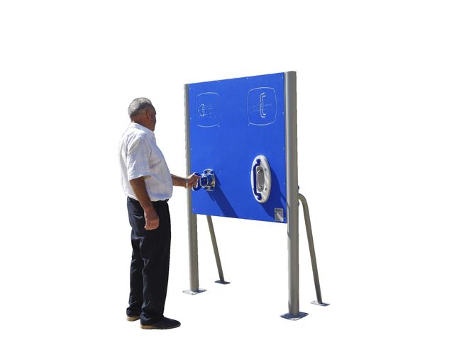 Structure en acier galvanisé avec peinture polyester thermo durcie. Panneau en polyéthylène haute densité, sans entretien et anti graffiti. Panneau explicatif d'emploi. Plaque postérieure en acier inoxydable poli.