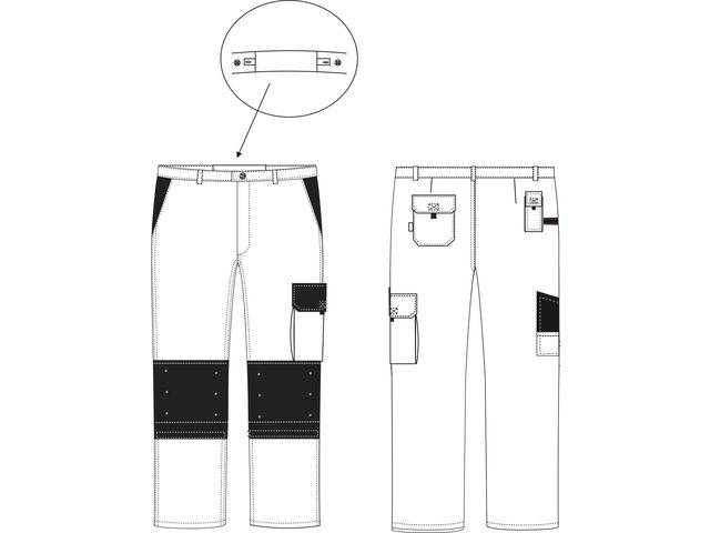Composition : 60% Coton 40% Polyester 310gr/m²Renforts : Cordura®Poches genoux : conformes à la norme EN14404Fermeture : Braguette fermée par FG nylonCeinture : élastiquée dosPoches : 2 italiennes, 1 téléphone, 1 mètre, 1 double mètre "porte-outils", 1 accroche marteau, 1 dos rabat velcro, 1 pince dosGenouillères : 2 poches genouillères Cordura® Noir (2 positions de hauteur de mousse + fermeture velcro sur toute la largeur)Tailles : 0 (36-38) à 7 (64-66)