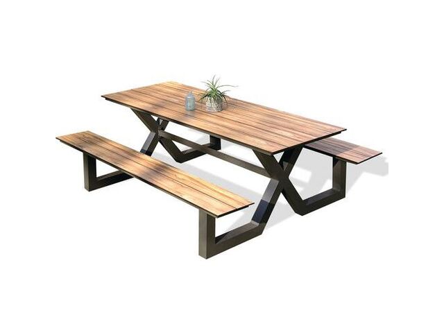 Apportez une touche d'élégance et de convivialité à votre espace extérieur avec la table de jardin Vancouver de ParisGarden. Ce magnifique ensemble de jardin, mesurant 210x174cm en gris anthracite, combine un plateau en aluminium couleur teck avec un piètement robuste en aluminium gris, offrant un look moderne et résistant. Conçue pour une utilisation régulière et une fréquence alimentaire, cette table rectangulaire est idéale pour accueillir famille et amis lors de repas en plein air, d'apéritifs prolongés ou simplement pour profiter des beaux jours. Sa conception soignée, avec un plateau d'une épaisseur de 60 mm, garantit une surface stable et esthétique pour tous vos moments de détente.