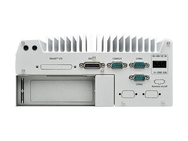 Le système intègre la technologie MezIO®, permettant d’ajouter facilement des interfaces d’E/S selon les besoins de l’application (ports série, E/S numériques, réseau…).