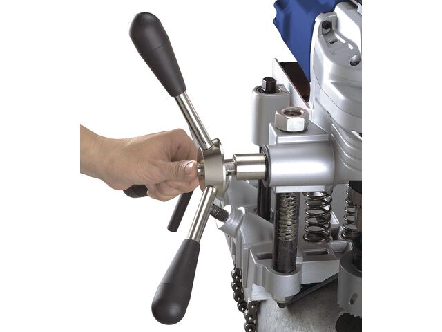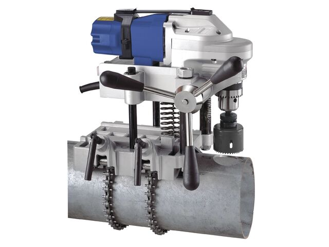 Perceuse pour scie à trépan jusque ø 127 mm 1,1 kW avec chaîne pour tubes de 32 à 203 mm niveau à bulle intégré Metallkraft RB127 - produit présenté par TORROS