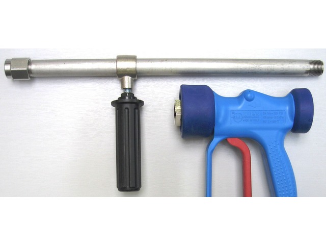 Pour atteindre les surfaces éloignées ou pour couvrir de grandes surfaces, ces pistolets sont livrables avec une lance incorporée qui est munie d'une poignée complémentaire.