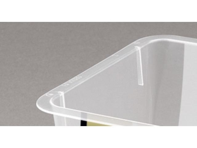 Contenance : 1075 mlPoids : 39 gDimensions : 185 mm (longueur) x 114,7 mm (largeur) x 78,9 mm (hauteur)Matières : PPC, PPR, PPH, PEHD, PS, PETDécoration : IML, transparence, teinte dans la masseProcess : Operculage sur plage, pasteurisation, cuisson industrielle, démoulageTempérature : Températures négatives (jusqu'à -18°C)Fournisseur : GERMAY PLAST'IC