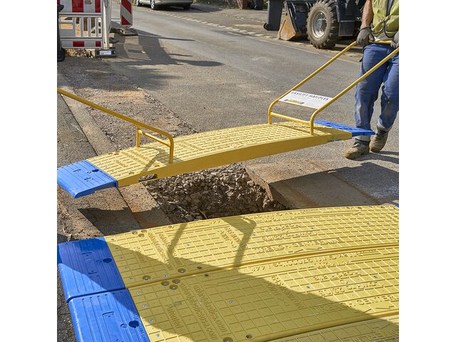 “ Franchissement sécurisé de tranchées, surface antidérapante, installation rapide sans boulonnage, durable, résistante aux chocs, stable, manipulations faciles avec poignées Easilift. ”