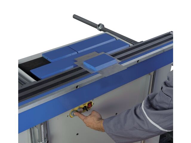 Commande : Pédale de commande pour l'activation de l'électro-aimant puissant (maintient les mains libres pour le positionnement)
