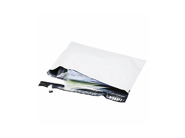 Matière : Polyéthylène basse densité (PEBD) 80µ, 50% recyclé Dimensions : 480 x 320 mm Couleur : Intérieur noir opaque, extérieur blanc Fermeture : Bande auto-adhésive permanente Résistance à la déchirure : Indéchirable Etanchéité : Imperméable Ecologique : 50% de PEBD recyclé Existe en version : 60µ