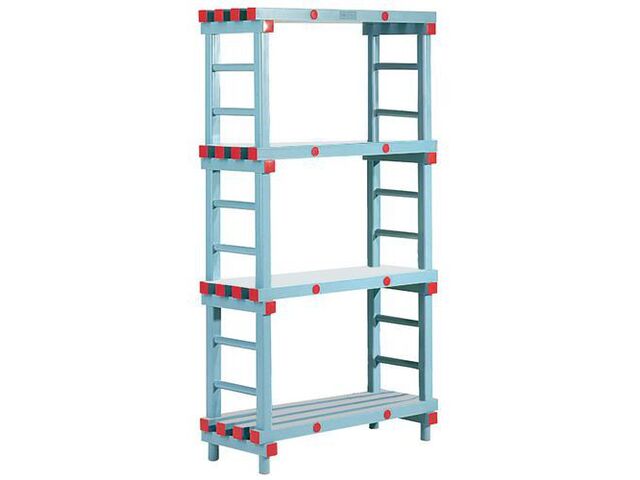 Le Kit Poly-Store comprend 4 tablettes tubulaires de 50 mm d'épaisseur, toutes dans un élégant coloris bleu clair, tout comme l'armature, assurant une uniformité esthétique dans votre établissement. Sa conception configurable et son montage sans outils vous permettent une installation rapide et aisée, même pour des configurations complexes.