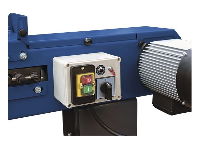 Ponceuse à bande professionnelle pour métaux modèle d'établi avec dimensions de bande abrasive 100x1220 mm et moteur puissant de 1,5 kW en monophasé 230V.