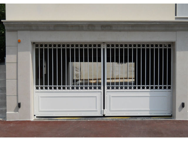 Type: Porte battante accordéonNombre de vantaux: 2, 3 ou 4Structure: Tubulaire renforcéePoteaux: 140x140 à 250x150 mm selon les dimensionsCapacité par vantail: 800 kgPivots: Sur roulements à billes étanches avec graisseurProtection: Sablage, métallisation, laquage couleur RALAération: En partie basse