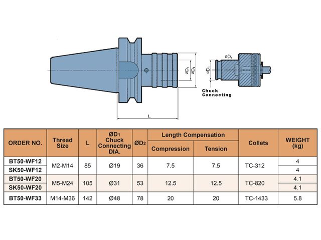 Porte-outils de taraudage à serrage rapide séparé avec compensation de longeur raccord MAS403 BT50 pour tarauds machine de M2 à M24.