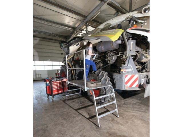 Pensée pour une intégration rapide en atelier, en maintenance ou en zone logistique, cette plateforme optimise les temps de mise en place grâce à son système de pliage avec charnières à verrouillage automatique. Les marches striées assurent un accès fiable, tandis que les patins antidérapants stabilisent l’ensemble au sol, limitant les risques d’erreur liés aux déplacements.