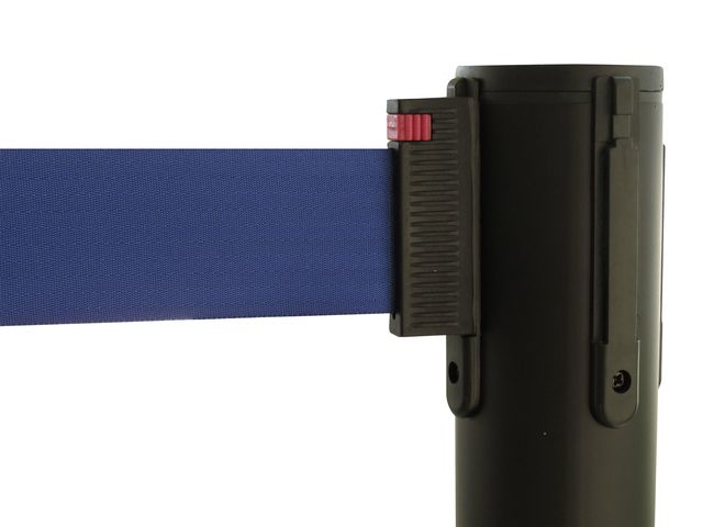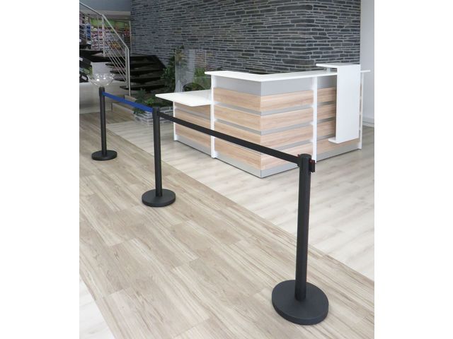 Type : Poteau de balisage avec enrouleur Couleur du poteau : Noir Couleur de la sangle : Disponible en noir et bleu Longueur de la sangle : 2300 mm Positions possibles : 4 Facilité d'utilisation : Sangle rétractable pour modifier facilement le parcours client Installation : Fixation de la base au sol avec vis ou chevilles Durabilité : Fabriqué avec des matériaux robustes